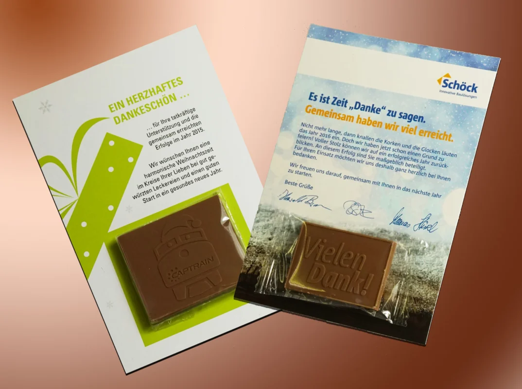 Produktinformationen zu Schokologos Werbe-Schokolade und und Schoko-Giveaways aus unserer Kundenumfrage – Hier bieten wir Ihnen alle relevanten Produktinformationen an.