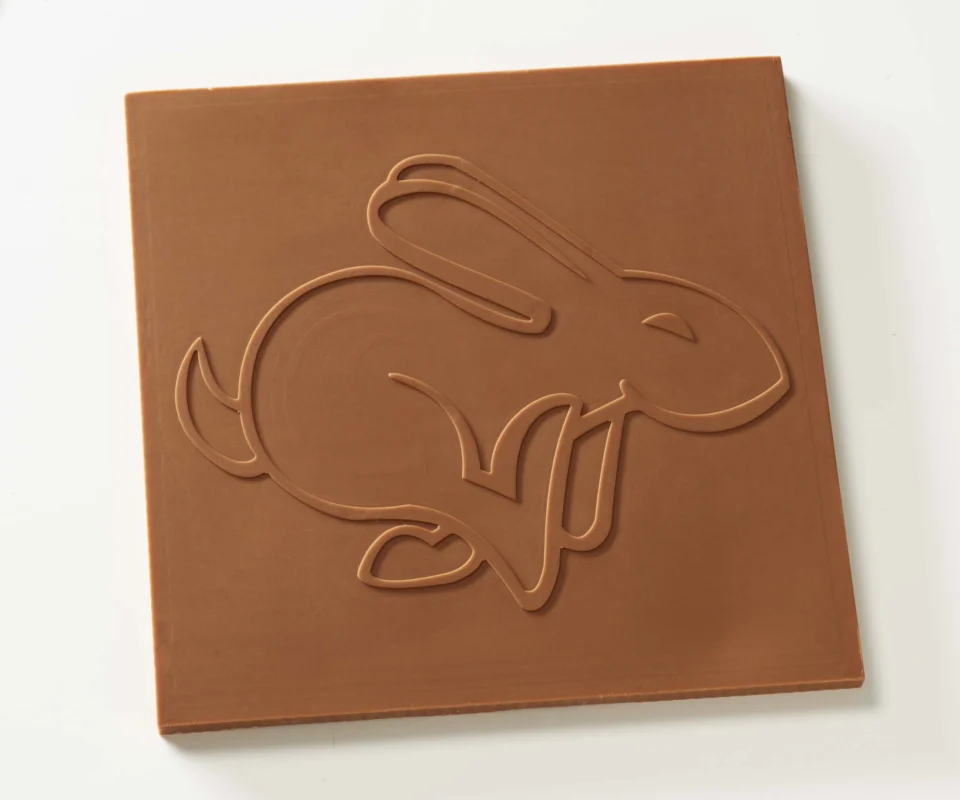 Ihr Firmenlogo mit höchster Präzision in Schokolade. Heben Sie sich von der Masse ab.