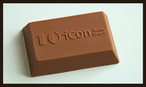 Auch ein kleines Firmenjubiläums-Geschenk hat die Geschäftsführung der iCon_Berlin GmbH für ihre Gäste vorbereitet. 30g-Schokoladen-Goldbarren aus feinster belgischer Schokolade mit dem Firmenlogo von iCon geprägt und hergestellt von der Düsseldorfer Firma Schokologo, werden als „Firmengold“ auf einem silbernen Tablett verteilt. Diese sollten als Erinnerung an das Firmenjubiläum und als Dank für die gute Zusammenarbeit und die Treue der Kunden und Geschäftspartner dienen.