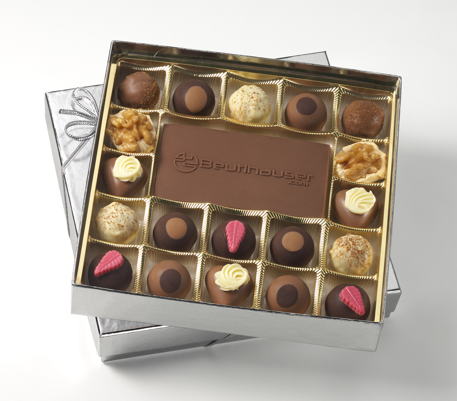 So übernehmen wir beispielsweise auf Wunsch und in Ihrem Namen den kompletten nationalen wie auch den internationalen Versand. Wir benötigen dafür nur einige Informationen, wie z.B. die Empfängeradressen und das gewünschte Lieferdatum. Darüber hinaus erfüllen wir gerne die individuellen Kundenwünsche bei der Präsentation unserer beliebten Pralinenboxen. Unser erfahrenes Konfektionierungsteam bringt sich selbst gerne kreativ ein, setzt aber ebenso verlässlich Ihre Ideen und Vorgaben um, z.B. wenn die Verpackung dem Corporate Design des Unternehmens entsprechen soll oder zusätzliche Elemente, wie Schleifen oder Grußkarten, den Schokoladenpräsenten hinzugefügt werden sollen.
