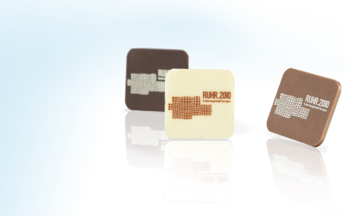Um das Logo RUHR.2010 auf originelle Weise zu transportieren, wurden unterschiedlichste Werbartikel eingesetzt, angefangen von Kugelschreibern, Blöcken, Bleistiften und Radiergummis für Pressekonferenzen, Tagungen etc. über Einzelmaßnahmen für Städte, ausländische Gäste der Regierung und Firmen bis hin zum Einsatz von bedruckten Schokoladenstückchen in den ICE-Zügen der Deutschen Bahn. Darüber hinaus wurde ein umfangreiches und ansprechendes Merchandise-Sortiment entwickelt. Auch für andere Großereignisse – etwa den European Song Contest in Düsseldorf – sollte diese süße Werbung Schule machen. Denn damit bleibt der Veranstaltungsort garantiert im Gedächtnis der Besucher als sympatisch gespeichert.