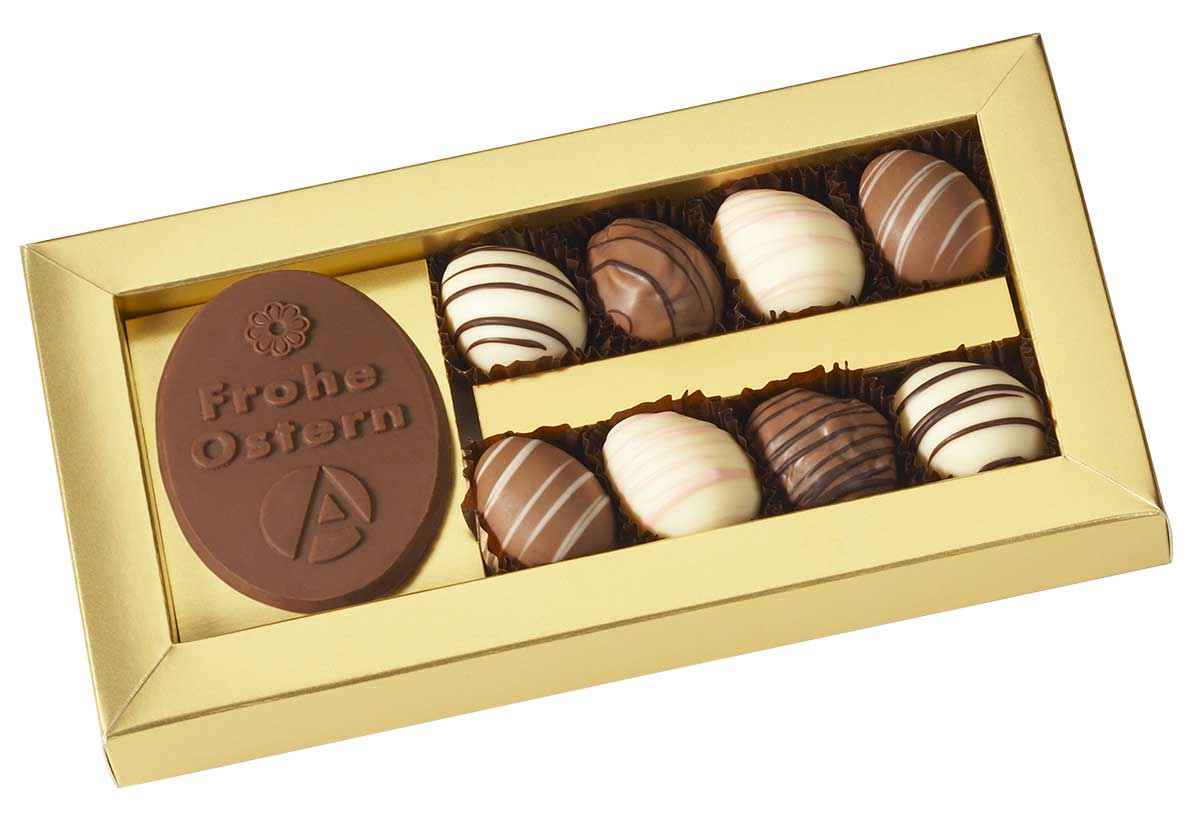 Ostern-Pralinenschachtel mit eiförmiger Schokolade 7,5 cm, + 8 Eier-Pralinen