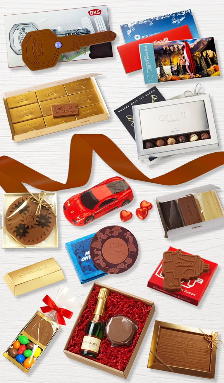 Jetzt als Geschäftskunde registrierenHome » Werbegeschenke aus Schokolade, Werbeartikel & Werbemittel » Mitarbeitergeschenke aus Schokolade