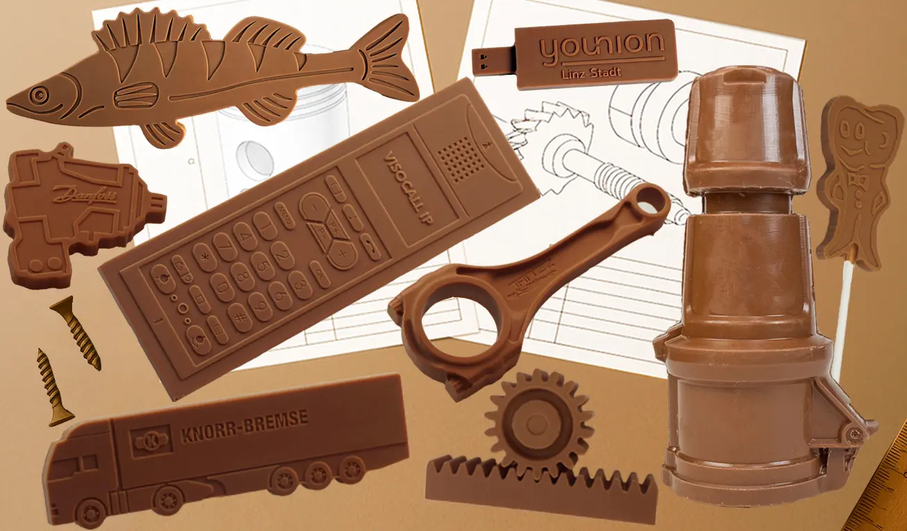Ausgefallene Sonderformen – z. B. Goldbarren, Schoko-CD, Handy, USB-Stick oder Ihr Firmenmaskottchen